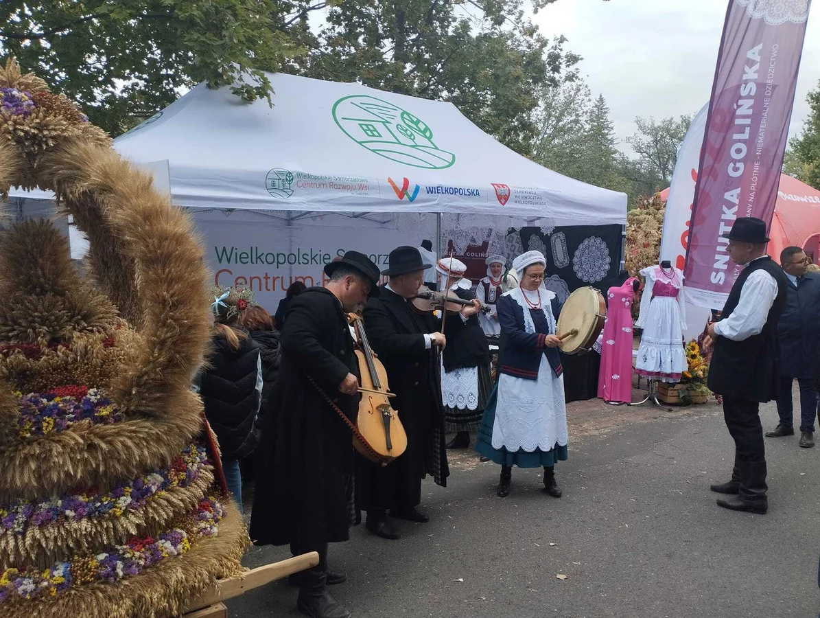 Goście dożynkowi z całej Polski mogli podziwiać tradycje wpisane na Krajową Listę Niematerialnego Dziedzictwa Kulturowego. Piękne stroje, czepce, koszule i serwety autorstwa pani Jolanty Łukaszewskiej ukazały finezję snutki golińskiej, czyli misternego haftu ludowego, który był powszechnie stosowany na wielkopolskiej wsi w okolicach Goliny jeszcze w połowie XIX wieku. Nie mniejszym zainteresowaniem cieszyły się stroje bamberskie - bo któż nie chciałby mieć pamiątkowego zdjęcia z Bamberką noszącą ogromny, kwiatowy czepiec, w którą przeobraziła się pani Karolina Pawłowska.